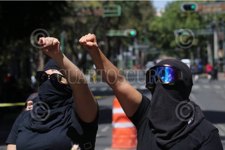 CIUDAD DE MÉXICO, 13FEBRERO2022.- Integrantes de colectivas feministas protestaron afuera de la CEN de Morena en contra del candidato a gobernador de Guerrero, Félix Salgado Macedonio, quién es señalado por cinco casos de abuso y violencia hacia las mujeres en este estado. Durante la protesta las mujeres cerraron con cadena la puerta de las instalaciones, cerraron la vialidad en la calles de Monterrey y Chihuahua, colonia Roma Norte y permanecen en plantón con el propósito de mantenerse hasta mañana. FOTO: GRACIELA LÓPEZ /CUARTOSCURO.COM