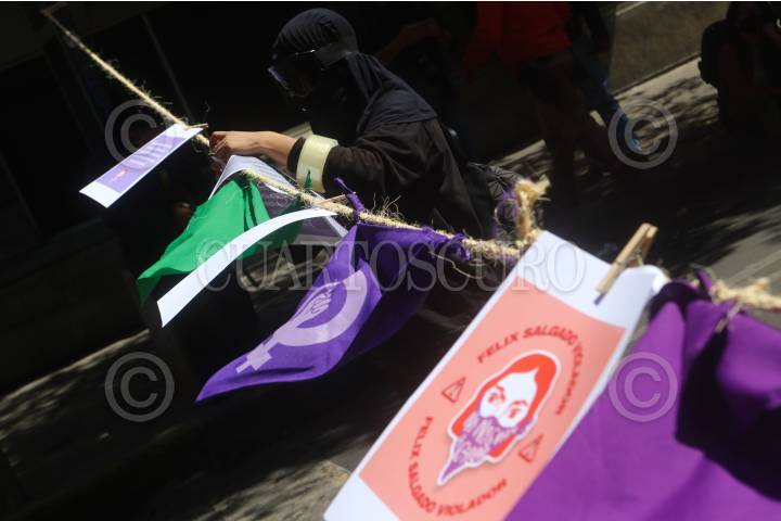 CIUDAD DE MÉXICO, 13FEBRERO2022.- Integrantes de colectivas feministas protestaron afuera de la CEN de Morena en contra del candidato a gobernador de Guerrero, Félix Salgado Macedonio, quién es señalado por cinco casos de abuso y violencia hacia las mujeres en este estado. Durante la protesta las mujeres cerraron con cadena la puerta de las instalaciones, cerraron la vialidad en la calles de Monterrey y Chihuahua, colonia Roma Norte y permanecen en plantón con el propósito de mantenerse hasta mañana. FOTO: GRACIELA LÓPEZ /CUARTOSCURO.COM