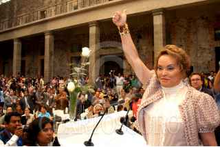 MÉXICO D.F. 14JULIO2006.- Elba Esther Gordillo, lider sindical de los maestros, se reunió con maestros, donde comento que fue expulsada del PRI por una camarilla y que Roberto Madrazo, por eso jamás será presidente de México. FOTO: Guillermo Perea/CUARTOSCURO.COM