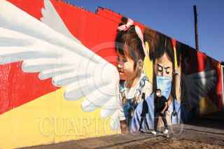 CIUDAD DE MÉXICO, 13FEBRERO2021.- Mural en homenaje al personal médico que ha luchado cara a cara cintar el COVID-19, esto previo al Día del Amor y la Amistad. FOTO: ROGELIO MORALES /CUARTOSCURO.COM