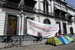 PUEBLA, PUEBLA, 13FEBRERO2021.- Plantón de activistas se reinstala afuera del Congreso del Estado en busca de la aprobación de la ley Agnes o ley de identidad de las personas trans, misma que los legisladores se comprometieron a aprobar antes del 15 de Febrero. FOTO: MIREYA NOVO/CUARTOSCURO.COM