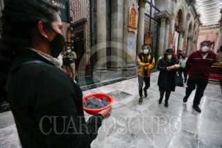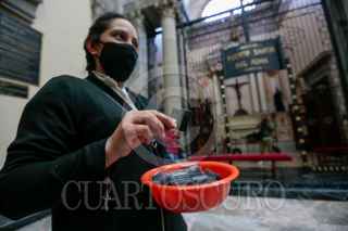 TOLUCA, ESTADO DE MÉXICO, 14FEBRERO2021.- En las iglesias católicas del Valle de Toluca se reparten bolsitas con cenizas para que las familias mexiquenses puedan imponérsela el Miércoles de Ceniza, marcando el inicio de la Cuaresma. El día de la celebración en los templos se tendrá un aforo mínimo y no será pintada la cruz, la ceniza se les esparcirá en la cabeza de cada católico. FOTO: CRISANTA ESPINOSA AGUILAR /CUARTOSCURO.COM
