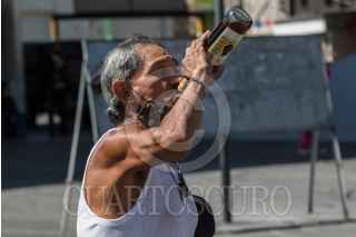 CIUDAD DE MÉXICO, 14FEBRERO2021.- Un hombre y su botella de "Presidente" se encomiendan la Virgen de Santa Cecilia en la Plaza de Garibaldi, para después sellar con un buen trago el inicio de la jornada. FOTO: MOISÉS PABLO/CUARTOSCURO.COM