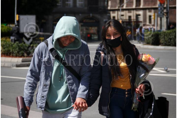 CIUDAD DE MÉXICO, 14FEBRER02021.- Capitalinos aprovechan el cambio a semáforo naranja para salir a celebrar en pareja el día del Amor y la Amistad celebrado de manera internacional el 14 de febrero. FOTO: ANDREA MURCIA /CUARTOSCURO.COM