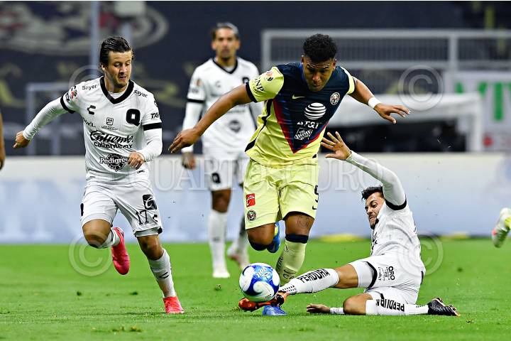 CIUDAD DE MÉXICO, 14FEBRERO2021.- América venció 2-1 a los Gallos Blancos del Querétaro, los goles fueron de Santiago Naveda Lara y Henry Martín, por parte de las Águilas, mientras que Ángel Sepúlveda descontó por los queretanos. El partido correspondió a la jornada 6 y se jugó en el Estadio Azteca. FOTO: CORTESÍA LIGA MX/IMAGO7/CUARTOSCURO.COM