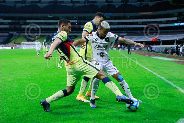 CIUDAD DE MÉXICO, 14FEBRERO2021.- América venció 2-1 a los Gallos Blancos del Querétaro, los goles fueron de Santiago Naveda Lara y Henry Martín, por parte de las Águilas, mientras que Ángel Sepúlveda descontó por los queretanos. El partido correspondió a la jornada 6 y se jugó en el Estadio Azteca. FOTO: CORTESÍA LIGA MX/IMAGO7/CUARTOSCURO.COM