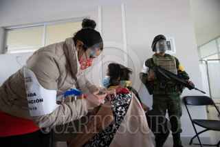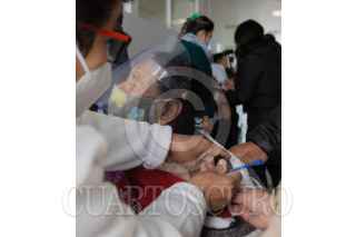 AMEALCO DE BONFIL, QUERÉTARO, 15FEBRERO2021.- Adultos mayores de los municipios de Amealco, Arroyo Seco y Landa de Matamoro, consideradas con alta población indígena y con alta marginación, comenzaron a recibir la vacuna contra el Covid-19. Esta entidad recibió 13, 580 dosis de la vacuna elaborada por el laboratorio AstraZeneca que fueron custodiadas por elementos del Ejército. Los encargados de la inmunización estuvieron a cargo de personal del IMSS, ISSSTE, SESEQ y Bienestar; esta última integró las “Brigadas Correcaminos” que en casos especiales acuden a los domicilios a vacunar a los adultos mayores de 60 años. FOTO: DEMIÁN CHÁVEZ/CUARTOSCURO.COM