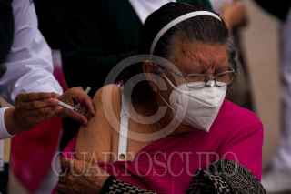 MEXICALI, BAJA CALIFORNIA,15FEBRERO2021.- Este lunes comenzó la aplicación de la vacuna "Covishield" de la universidad de Oxford y AstraZeneca contra el Covid-19. Personas de la tercera edad provenientes de la periferia en el Valle de Mexicali, San Felipe, Valle de Puebla y Santorales, acudieron con su respectiva cita realizada en días previos en la plataforma federal. FOTO: VÍCTOR MEDINA/CUARTOSCURO.COM