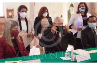 CIUDAD DE MÉXICO. 16FEBRERO2021.- Jorge Arganis Díaz Leal, titular de Secretaria de Comunicaciones y Transportes, encabezó la celebración del Día del Telegrafista en donde entregó reconocimientos a trabajadores de 30 y 20 años de servicio, el evento tuvo lugar en el Museo del Telégrafo, en el centro histórico de la capital. FOTO: VICTORIA VALTIERRA/CUARTOSCURO.COM
