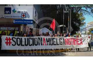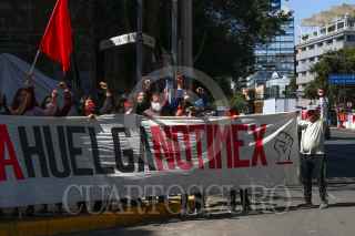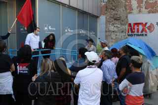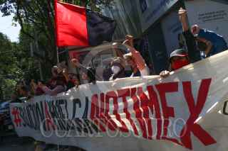 CIUDAD DE MÉXICO, 16FEBRERO2021.- Trabajadores de la Agencia de Estado Notimex afiliados al SutNotimex bloquearon por una hora avenida Baja California, esto a casi un año de estalla la huelga. Los huelguistas informaron que el día de hoy se llevó la novena audiencia en la cual se desahogaron pruebas a su favor dentro del proceso de imputabilidad y la sexta de desahogo de pruebas sobre posibles violaciones a derechos laborales en los que incurrió la empresa y su directora Sanjuana Martínez. FOTO: MOISÉS PABLO/CUARTOSCURO.COM