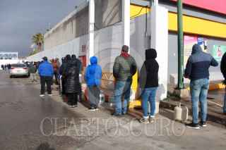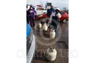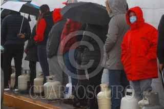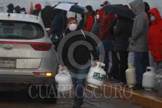 CIUDAD JUÁREZ, CHIHUAHUA, 16FEBRERO2021.- Obligados por el drástico descenso en la temperatura, los juarenses saturaron desde la tarde de ayer y hasta por la noche los expendios de gas embotellado. Los ciudadanos hicieron largas filas en los centros de rellenado para hacerse del energético y así hacer frente al intenso frío.