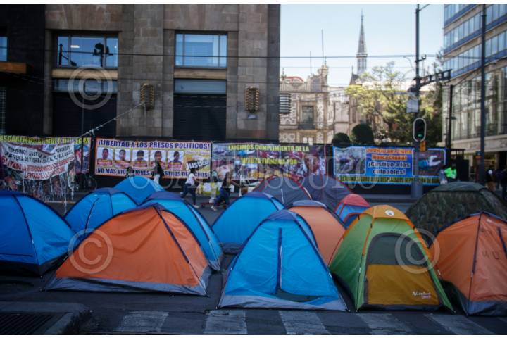 CIUDAD DE MÉXICO, 16FEBRERO2021.- Los plantones por distintos grupos de protestantes habitan en el primer cuadrante del Centro Histórico. Comenzó con el grupo FRENA que ocupaba toda la plancha del Zócalo Capitalino; a mediados de diciembre se disperso y sólo quedó el Campamento México quienes están en contra de Andrés Manuel López Obrador, presidente de México. La calle 20 de noviembre es ocupada por la toma de artesanos Triki Oaxaqueños quienes exigen el permiso para poder ambulantear en el Centro Histórico. Con un mes se encuentra la toma frente Bellas Artes a la altura de Eje Central representantes de desplazados de Tierra Blanca buscan una mesa de diálogo con Alejandro Encinas para darle libertad a los presos políticos y el regreso de sus tierras. Por último con un par de días el Frente popular revolucionario comunista se mantiene frente a Palacio Nacional exigen hablar con el Presidente de la República sobre el desplazó de tierras, desempleo, entre otras peticiones. FOTO: ANDREA MURCIA /CUARTOSCURO.COM