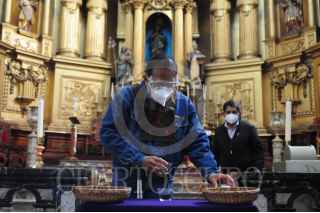 CIUDAD DE MÉXICO, 17FEBRERO2021.- Este miércoles se llevó a cabo la tradición religiosa del Miércoles de Ceniza, acto que da inicio a la Cuaresma rumbo a la Semana Santa, debido a la pandemia de Covid-19, la actividad cotidiana de asistir a las iglesias y colocarse una cruz de ceniza a manos del sacerdote no podrá llevarse a cabo, esto, con el fin de no entrar en contacto con los creyentes y continuar con la cadena de contagio de esta enfermedad. Ante ello, la Arquidiócesis de México optó por recomendar a los padres de cada recinto religioso, regar el polvo sobre la cabeza de los católicos, o bien, regalarles en un pequeño recipiente la cenizas para llevarlas a casa con la familia. FOTO: DANIEL AUGUSTO /CUARTOSCURO.COM