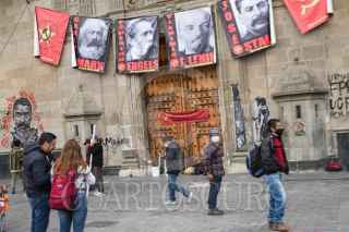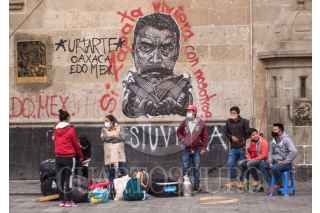CIUDAD DE MÉXICO. 17FEBRERO2021.- Integrantes del Frente Proletario Revolucionario (FPR), realizan una manifestación en las afueras de Palacio Nacional; ellos provienen basicamente de Estado de México, Chiapas y Oaxaca. FOTO: VICTORIA VALTIERRA/CUARTOSCURO.COM