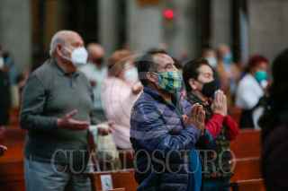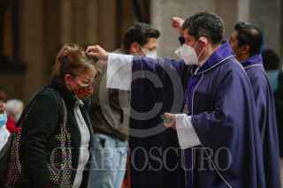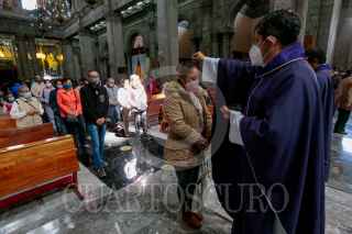 TOLUCA, ESTADO DE MÉXICO, 17FEBRERO2021.- Ante la contingencia por COVID-19 la celebración del Miércoles de Ceniza tuvo cambios en su celebración, en la Catedral de Toluca tomaron ceniza algunos fieles católicos sin tener aglomeraciones o en iglesias de Metepec les fue dada una pequeña bolsa con la ceniza para que pudieran ponerla a sus familiares en casa, esta celebración marca el inicio de la Cuaresma. FOTO: CRISANTA ESPINOSA AGUILAR /CUARTOSCURO.COM