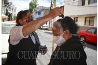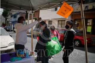 CIUDAD DE MÉXICO, 17FEBRERO2021.- Católicos de Cuajimalpa celebraron el miércoles de cenizas, que en el calendario cristiano marca el inicio de la pascua, para evitar contacto y respetar medidas sanitarias para prevenir contagios de COVID-19 la ceniza no fue marcada en cruz en la frente si no aplicada con una cuchara en la cabeza. También se dio cenizas en bolsitas para las personas que no pueden salir de casa. En esta alcaldía todo se realizó al aire libre sin permitir acceso a la iglesia. FOTO:ANDREA MURCIA /CUARTOSCURO.COM