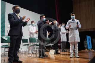 CIUDAD DE MÉXICO, 17FEBRERO2021.- En la emergencia sanitaria por COVID-19, el Instituto Mexicano del Seguro Social (IMSS) se consolida como la mejor escuela de medicina al forjar al 60 por ciento de especialistas en México, afirmó el director general, Maestro Zoé Robledo, al encabezar la Ceremonia de Clausura del Ciclo Académico 2020-2021 e Inauguración del 2021-2022 de los Cursos de Especialización Médica. Zoé Robledo resaltó que para fortalecer la formación de médicos residentes y darles oportunidades de acceder al IMSS, se trabajó con el Sindicato Nacional de Trabajadores del Seguro Social (SNTSS) para nuevas contrataciones, a fin de cubrir el déficit de especialistas que había en 2020. “Pasamos de 4 mil 613 a 5 mil 800 de los que aplican el Examen Nacional de Residencias Médicas, y esto significó una inversión, nunca gasto, de más de 300 millones de pesos”, puntualizó. Sobre los 4 mil 587 médicos que concluyeron su residencia, Zoé Robledo indicó que su aprendizaje se dio “en terracería y jamás en lo cómodo del pavimento”, ya que esa es la gran diferencia de un especialista formado en el Seguro Social. FOTO: IMSS/CUARTOSCURO.COM