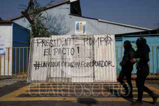 CIUDAD DE MÉXICO, 18FEBRERO2021. - Por la madrugada un grupo de estudiantes mixto del CCH Vallejo que incluye La colectiva Siempre Vivas Vallejo, tomaron las instalaciones del plantel que permanece cerrado por la pandemia causada por COVID-19. La intención de las estudiantes es entablar una mesa de diálogo con los directivos acompañadas de representantes de la Comisión Nacional de Derechos Humanos (CNDH) para que se logren resolver los punto de su pliego petitorio. Este consta de necesidades como el incluir en el planten atención psicológica con perspectiva de género para las alumnas; que se puedan grabar las clases en línea ya que maestros les han prohibido esto haciéndoles saber que puede ser causa de expulsión, según relatan los jóvenes. También piden que se desarrollen opciones para los alumnos que no cuentan con computadora, móvil o Internet para presenciar las clases en línea. Las instalaciones se encuentran en buenas condiciones hasta el momento; salones, cooperativas, pasillos, baños, dirección no han sido intervenidas o dañadas, solo las puertas principales se encuentran bloqueadas con bancas. Según los estudiantes que mantienen la toma ningún directivo se ha acercado para entablar diálogo, sin embargo han sido acosados por docentes que les han tomado foto y video, también les han destruido los carteles que permanecían en la parte de afuera del planten y se les ha amenazado con la expulsión. FOTO: ANDREA MURCIA /CUARTOSCURO.COM