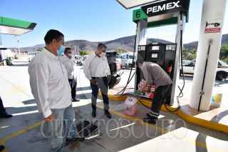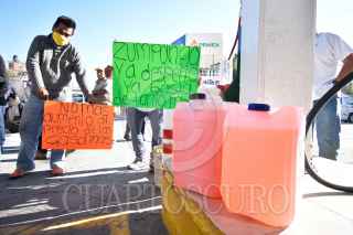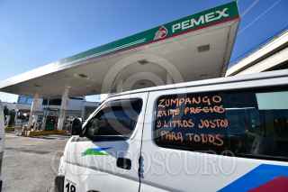 EDUARDO NERI, GUERRERO, 18FEBRERO2021.- Transportistas del municipio de Eduardo Neri realizaron protestas en las dos estaciones despachadoras de gasolina que se tiene en este lugar, con ello demandaron que se den precios justos por el combustible, que se despachen litros completos y que ofrezca producto de buena calidad. Sergio Parra Nava, quien representa a los transportistas de la ruta Zumpango-Chilpancingo indicó que los habitantes de Zumpango siempre se han quejado del mal servicio que se presta en la gasolinera donde es evidente que les roban cada vez que abastecen combustible. Los manifestantes realizaron una prueba para verificar la cantidad de combustible que les roban en cada carga y pidieron que les despacharan 20 litros en garrafas de plástico, en las que se tiene marcado hasta donde deben llegar los 20 litros y en ninguna de las dos se otorgó el combustible completo. FOTO: DASSAEV TÉLLEZ ADAME/CUARTOSCURO.COM