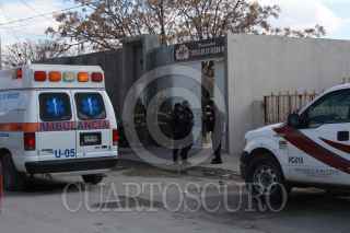 CIUDAD JUÁREZ, CHIHUAHUA, 18FEBRERO2021.- Autoridades se movilizaron ante el reporte de personas intoxicadas con monóxido de carbono, al llegar al domicilio en Zaragoza encontraron a dos hombres sin vida. Agentes municipales derribaron la puerta del domicilio y encontraron a un hombre de tercera edad y a su hijo sin signos vitales. Los hechos ocurrieron en un domicilio ubicado en el cruce de las calles Ramón Rayón y Juan de la Barrera, en la fachada con una manta de “Caballos de Acero MC.” Hasta el momento no hay datos acerca de la identidad de los hombres que perdieron la vida en el lugar. FOTO: NACHO RUIZ /CUARTOSCURO.COM