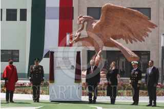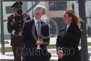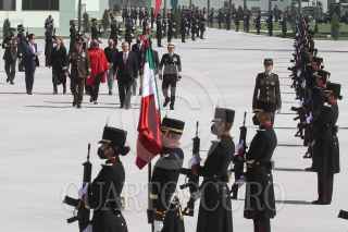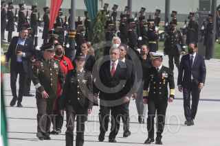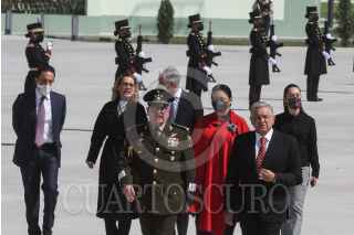 ZUMPANGO, ESTADO DE MÉXICO, 19FEBRERO2021.- Andrés Manuel López Obrador, presidente de México, Beatriz Gutiérrez Müller, Presidenta del Consejo Honorario de la Coordinación de Memoria Histórica y Cultural de México, Claudia Sheinbaum, jefa de gobierno, Omar Fayad, gobernador de Hidalgo, Alfredo del Mazo, gobernador del Estado de México, Óscar Eduardo Ramírez Aguilar, presidente de la Cámara de Senadores, Dulce María Sauri Riancho, presidenta de la Cámara de Diputados y José Rafael Ojeda, titular de la Secretaría de Marina, encabezaron la ceremonia de conmemoración del 108 Aniversario del Ejército Nacional en el Campo Militar de Santa Lucía. FOTO: ROGELIO MORALES /CUARTOSCURO.COM