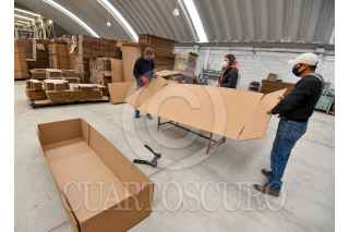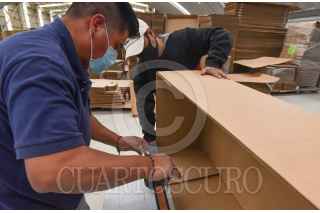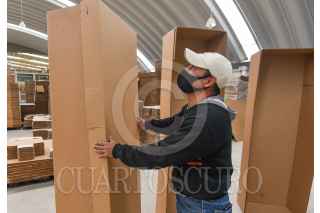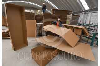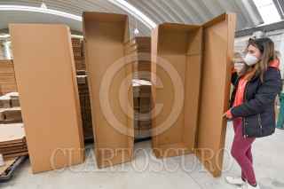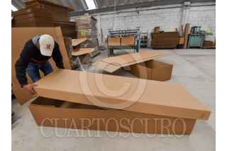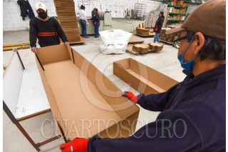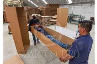 TOLUCA, ESTADO DE MÉXICO, 19FEBRERO2021.- A raíz del inicio de la pandemia por COVID-19 el año pasado la empresa mexicana KJ Cajas de Cartón comenzó a elaboración ataúdes de cartón, han vendido aproximadamente 7 mil a lo largo de la República Mexicana; el cien por ciento ha sido adquirido por la iniciativa privada, trataron de tener un acercamiento con instituciones de salud y diversos niveles de gobierno para que conocieran su producto. Los ataúdes de cartón están fabricados con cartón que puede soportar hasta 130 kilos, son amigables con el ambiente, de fácil armado, ocupan poco espacio ya que se encuentran desarmados, la capacidad de producción es superior a la de un ataúd de madera o cualquier otro material y económico, el precio de una pieza es de 220 pesos mexicanos. Estos ataúdes están diseñados para poder despedir dignamente a la gente que está muriendo por COVID-19, se pueden manipular los cuerpos de forma segura y ordenada. A raíz del incremento de muertes por SARS-CoV-2 el interés por adquirir estos ataúdes ha aumentado en los últimos meses. Como empresa ha realizado donaciones, un ejemplo es la colonia en donde ubican una de sus bodegas, en la cual el número de fallecimientos fue alto y ayudaron a la población con ataúdes de cartón. FOTO: CRISANTA ESPINOSA AGUILAR /CUARTOSCURO.COM