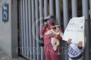 CIUDAD DE MÉXICO, 19FEBRERO2021.- La activista Kika Flores se encadenó afuera de las instaciones de la SEIDO para exigir justicia debido a una balacera ocasionada el día de ayer en su casa en Guerrero señalado por el presunto culpable Federico "N". Durante su protesta estuvo acompañada de sus nietas y su hija. FOTO: GRACIELA LÓPEZ /CUARTOSCURO.COM