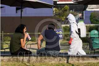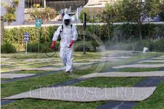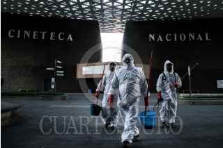 CIUDAD DE MÉXICO, 19FEBRERO2021.- A partir de este viernes la Cineteca Nacional reabrirá sus puertas reanudando sus proyecciones especiales del Foro al aire libre siguiendo las medidas sanitarias correspondientes durante el semáforo naranja epidemiológico por covid-19. Personal realizó desinfección previo a la función que será proyectada a las 19 horas. FOTO: MARIO JASSO/CUARTOSCURO.COM