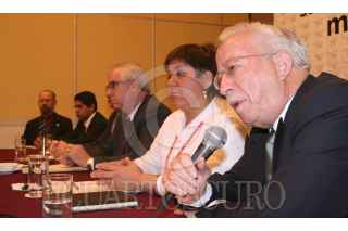 MÈXICO, D.F. 20JULIO2006.- Alberto Nuñes Esteva, presidente COPARMEX en conferencia de prensa afirmò que de hacerse un conteo voto por voto, se estarìa dudando de la honorabilidad de los ciudadanos que cooperaron en las pasadas elecciones. Laura Helena Herrejòn, integrante del partido Nueva Alianza y representante del movimiento provecino. FOTO: Paola Hidalgo/CUARTOSCURO.COM