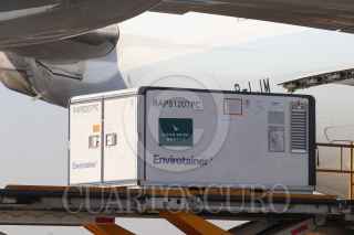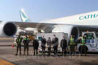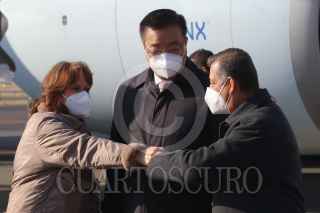 CIUDAD DE MÉXICO, 20FEBRERO2021.- La primera dosis de 200 mil vacunas Sinovac provenientes de Hong Kong para el Covid-19 arribó a la capital en la Terminal 1 del Aeropuerto Internacional de la Ciudad de México (AICM). Martha Delgado, subsecretaría para Asuntos Multilaterales y Derechos Humanos; Zhu Qingqiao, embajador Extraordinario y Plenipotenciario de China ante los Estados Unidos Mexicanos y Luis Antonio Ramírez, director del ISSTE encabezaron el evento. FOTO: GRACIELA LÓPEZ /CUARTOSCURO.COM