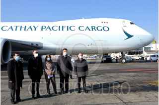 CIUDAD DE MÉXICO, 20FEBRERO2021.- Martha Delgado, subsecretaría para Asuntos Multilatterales y Derechos Humanos; Zhu Qingqiao, embajador Extraordinario y Plenipotenciario de China ante los Estados Unidos Mexicanos y Luis Antonio Ramírez, director del ISSSTE, durante la llegada del avión procedente de Hong Kong con el primer lote de 200 mil dosis de la vacuna china contra el COVID-19 "CoronaVac", desarrollada por la farmacéutica "Sinovac". FOTO: PRESIDENCIA/CUARTOSCURO.COM