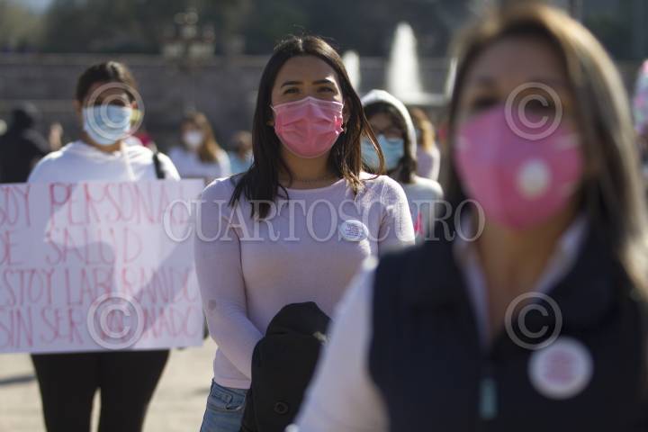 MONTERREY, NUEVO LEÓN, 20FEBRERO2021.- Un grupo de personal del sector de salud de instituciones públicas y privadas que laboran de primera mano con pacientes con Covid-19, acudieron al Palacio de Gobierno para exigir que sean tomados en cuenta primero y se les aplique la vacuna contra el Covid-19. Actualmente las dosis son aplicadas a adultos mayores al sur del estado de Nuevo León, en los municipios de Dr. Arroyo y Linares. Más del 80% de los contagios se concentran en el área metropolitana de Monterrey. Nuevo León suma 8mil, 661 defunciones por coronavirus. FOTO: GABRIELA PÉREZ MONTIEL / CUARTOSCURO.COM
