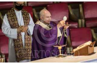 CIUDAD DE MÉXICO. 21FEBRERO2021.- El Arzobispo Primado de México, Carlos Aguiar Retes, en la misa dominical esta medio dia enla Basílica de Guadalupe. FOTO: VICTORIA VALTIERRA/CUARTOSCURO.COM