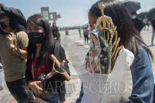 CIUDAD DE MÉXICO. 21FEBRERO2021.- MIles de fieles guadalupanos acudieron este día a visitar a la Morenita del Tepeyac. Espacio especial para muertos por el Covid 19 con veladoras y mensajes a sus seres que fallecieron a causa de esta enfermedad. FOTO: VICTORIA VALTIERRA/CUARTOSCURO.COM