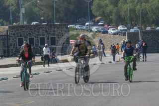 CIUDAD DE MÉXICO, 21FEBRERO2021.- Familias se dan cita en los estacionamientos aledaños al Estadio Olímpico Universitario para andar en bicicleta o en patines. Los presentes señalan que debido a que como los partidos son a puerta cerrada estos espacios están vacíos y no hay circulación de coches, lo que los convierten en sitios seguros para pasear. FOTO: MOISÉS PABLO/CUARTOSCURO.COM