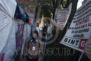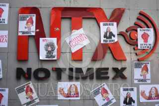 CIUDAD DE MÉXICO, 21FEBRERO2021.- La huelga que levantó el Sindicato Unido de Trabajadores de Notimex (SUTNOTIMEX) cumplió ya un año, esto luego de que llegara Sanjuana Martínez a la dirección General de la agencia de noticias, en donde acusan que hubo violaciones a los contratos del personal que fue despedido. FOTO: DANIEL AUGUSTO /CUARTOSCURO.COM
