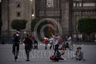 CIUDAD DE MÉXICO, 21FEBRERO2021.- La ciudad se mantiene en semáforo naranja con una ocupación hospitalaria de 60% en descendente según informe de la Secretaría de Salud. Capitalinos aprovechan para visitar el Centro Histórico y aprevechar la plancha del Zócalo para divertirse. FOTO: ANDREA MURCIA /CUARTOSCURO.COM