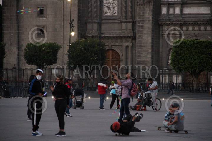 CIUDAD DE MÉXICO, 21FEBRERO2021.- La ciudad se mantiene en semáforo naranja con una ocupación hospitalaria de 60% en descendente según informe de la Secretaría de Salud. Capitalinos aprovechan para visitar el Centro Histórico y aprevechar la plancha del Zócalo para divertirse. FOTO: ANDREA MURCIA /CUARTOSCURO.COM