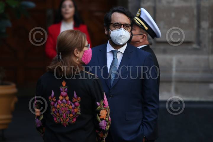 CIUDAD DE MÉXICO, 23FEBRERO2021.- Alberto Fernández, presidente de Argentina, Andrés Manuel López Obrador, presidente de México, y Beatriz Gutiérrez Müller, investigadora, escritora y esposa del presidente, encabezaron la ceremonia con motivo del CVIII Aniversario Luctuoso de Francisco I. Madero en Palacio Nacional. FOTO: GALO CAÑAS/CUARTOSCURO.COM