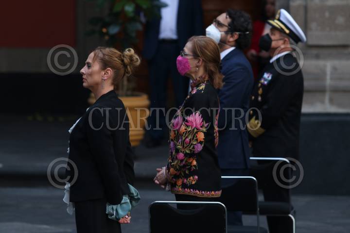 CIUDAD DE MÉXICO, 23FEBRERO2021.- Alberto Fernández, presidente de Argentina, Andrés Manuel López Obrador, presidente de México, y Beatriz Gutiérrez Müller, investigadora, escritora y esposa del presidente, encabezaron la ceremonia con motivo del CVIII Aniversario Luctuoso de Francisco I. Madero en Palacio Nacional. FOTO: GALO CAÑAS/CUARTOSCURO.COM