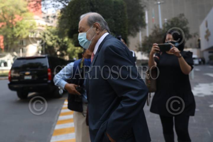 CIUDAD DE MÉXICO, 23FEBRERO2021.- Carlos Slim Helú, presidente honorario de Grupo Carso; Carlos Slim Domit, presidente del Consejo de Administración de América Móvil, y Daniel Hajj, salen de un hotel en Polanco tras reunirse con el Alberto Fernández, Presidente de Argentina. FOTO: CUARTOSCURO.COM