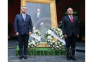 CIUDAD DE MÉXICO, 23FEBRERO2021.- Andrés Manuel López Obrador, Presidente de México, y Alberto Fernández, Presidente de Argentina, encabezaron la ceremonia del 108 Aniversario Luctuoso de Francisco I. Madero, en Palacio Nacional. FOTO: PRESIDENCIA/CUARTOSCURO.COM