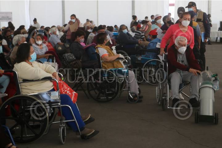ECATEPEC, ESTADO DE MÉXICO, 23FEBRERO2021.- Cientos de adultos mayores acudieron a la aplicación de las vacuna contra Covid-19 de CoronaVac, desarrollada por el laboratorio chino Sinovac Biotech, en el Multideportivo Las Américas. Desde ayer cientos de personas se quedaron sin la aplicación y desde la madrugada hicieron fila para poder ser vacunados, en el caso de los que ya no alcanzaron número, les postergaron su cita para mañana con un folio. La cita próxima que les agendaron para la segunda dosis es el 23 de marzo en el mismo lugar de aplicación. Alrededor de 2800 vacunas se aplicarán en este módulo del municipio en un horario de 9 a 18 horas. FOTO: GRACIELA LÓPEZ /CUARTOSCURO.COM