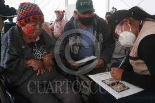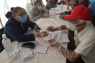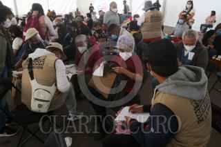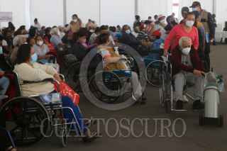 ECATEPEC, ESTADO DE MÉXICO, 23FEBRERO2021.- Cientos de adultos mayores acudieron a la aplicación de las vacuna contra Covid-19 de CoronaVac, desarrollada por el laboratorio chino Sinovac Biotech, en el Multideportivo Las Américas. Desde ayer cientos de personas se quedaron sin la aplicación y desde la madrugada hicieron fila para poder ser vacunados, en el caso de los que ya no alcanzaron número, les postergaron su cita para mañana con un folio. La cita próxima que les agendaron para la segunda dosis es el 23 de marzo en el mismo lugar de aplicación. Alrededor de 2800 vacunas se aplicarán en este módulo del municipio en un horario de 9 a 18 horas. FOTO: GRACIELA LÓPEZ /CUARTOSCURO.COM