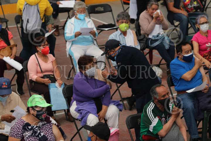 ECATEPEC, ESTADO DE MÉXICO, 23FEBRERO2021.- En el marco del segundo día de aplicación de vacunas Covid-19 de Coronovac, desarrollada por el laboratorio chino Sinovac Biotech, cientos de adultos mayores acudieron a realizar largas filas de espera afuera del Centro Cultural y Deportivo Las Américas. Alrededor de 2500 vacunas serán empleadas por día de las 200 mil dosis recibidas, en este y cada uno de los módulos instalados en este municipio en un horario de 9 a 18 horas. FOTO: GRACIELA LÓPEZ /CUARTOSCURO.COM