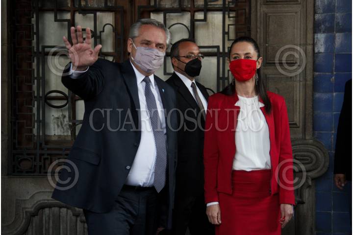 CIUDAD DE MÉXICO, 23FEBRERO2021.- Alberto Fernández, presidente de Argentina, fue reconocido por a través de Claudia Sheibaum, jefa de gobierno, con la “Condecoración de huésped distinguido” por el Gobierno de la Ciudad en el Antiguo Palacio del Ayuntamiento. El evento fue acompañado por Marcelo Ebrard, secretario de Relaciones Exteriores y Beatríz Gutiérrez Muller, Coordinadora Nacional de Memoria Histórica y Cultural de México y esposa del presidente de México. FOTO: ANDREA MURCIA /CUARTOSCURO.COM