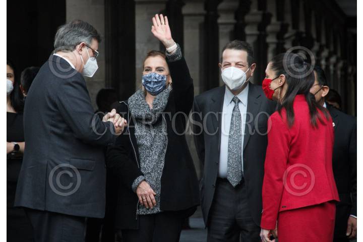 CIUDAD DE MÉXICO, 23FEBRERO2021.- Alberto Fernández, presidente de Argentina, fue reconocido por a través de Claudia Sheibaum, jefa de gobierno, con la “Condecoración de huésped distinguido” por el Gobierno de la Ciudad en el Antiguo Palacio del Ayuntamiento. El evento fue acompañado por Marcelo Ebrard, secretario de Relaciones Exteriores y Beatríz Gutiérrez Muller, Coordinadora Nacional de Memoria Histórica y Cultural de México y esposa del presidente de México. FOTO: ANDREA MURCIA /CUARTOSCURO.COM