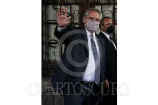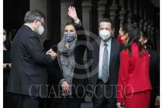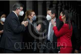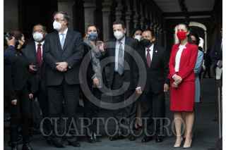 CIUDAD DE MÉXICO, 23FEBRERO2021.- Alberto Fernández, presidente de Argentina, fue reconocido por a través de Claudia Sheibaum, jefa de gobierno, con la “Condecoración de huésped distinguido” por el Gobierno de la Ciudad en el Antiguo Palacio del Ayuntamiento. El evento fue acompañado por Marcelo Ebrard, secretario de Relaciones Exteriores y Beatríz Gutiérrez Muller, Coordinadora Nacional de Memoria Histórica y Cultural de México y esposa del presidente de México. FOTO: ANDREA MURCIA /CUARTOSCURO.COM