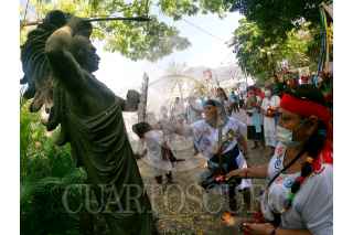 ACAPULCO, GUERRERO, 23FEBRERO2021.- Indígenas que radican Acapulco realizaron una ceremonia en honor al último Emperador Mexica Cuauhtémoc, el 23 de febrero se celebra su nacimiento según a la tradición oral indígena. FOTO: CARLOS ALBERTO CARBAJAL/CUARTOSCURO.COM