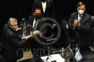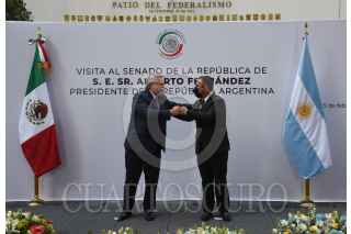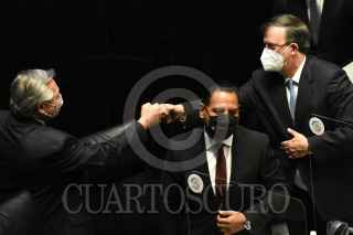 CIUDAD DE MÉXICO, 23FEBRERO2021.- Alberto Fernández, presidente de Argentina, visitó el Senado de la República para la Sesión Solemne por su visita al país. La recepción estuvo a cargo de Eduardo Ramírez, presidente de la Mesa Directiva del Senado y los coordinadores parlamentarios de cada partido. El presidente argentino estuvo acompañado por Marcelo Ebrard, secretario de Relaciones Exteriores. FOTO: DANIEL AUGUSTO /CUARTOSCURO.COM
